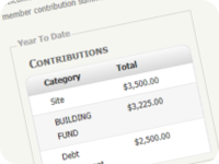 Track all of your contribution totals and trends in one place. Contribution totals can be arranged by amount, category or type, and can be viewed as trends from month to month or even year to year. |