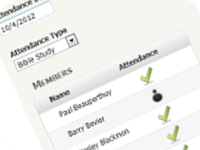 Our Take Attendance tool was specifically designed to be absolutely user friendly. From it you can set the attendance date, the type of attendance (church service, Bible study, retreat, etc.), and the members who were present. Attendance is saved and automatically entered into your Attendance stats to be tracked from the Attendance screen. With a clean interface and simple mechanics, taking attendance is as simple as checking a box. |